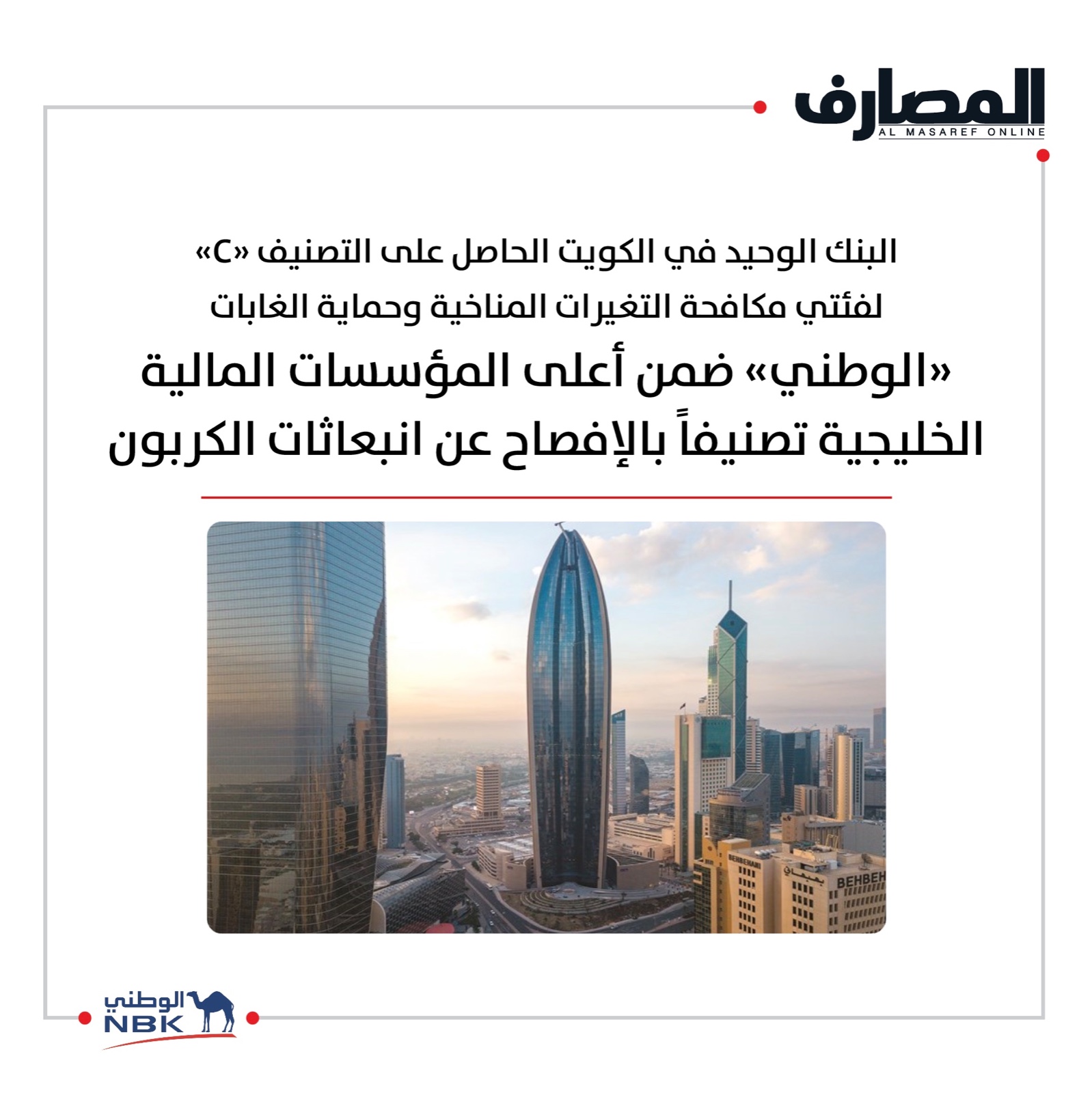 «الوطني» ضمن أعلى المؤسسات المالية الخليجية تصنيفاً بالإفصاح عن انبعاثات الكربون