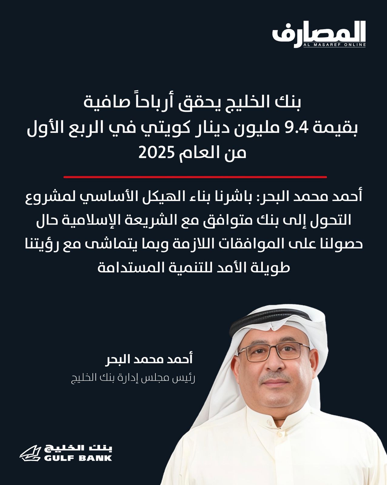 التقارير بنك الخليج يحقق أرباحاً صافية بقيمة 9.4 مليون دينار كويتي في الربع الأول من العام 2025 May 1, 2025 Posted by Imran Khan 01 May تحميل PDF قراءة