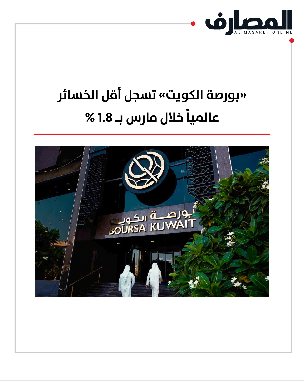 بورصة الكويت تسجل أقل الخسائر عالمياً خلال مارس بـ 1.8%