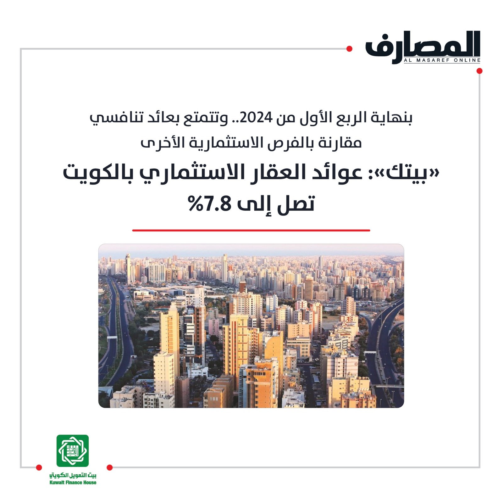 الأخبار «بيتك»: عوائد العقار الاستثماري بالكويت تصل إلى 7.8% May 22, 2024 Posted by Imran Khan 22 May تحميل PDF قراءة