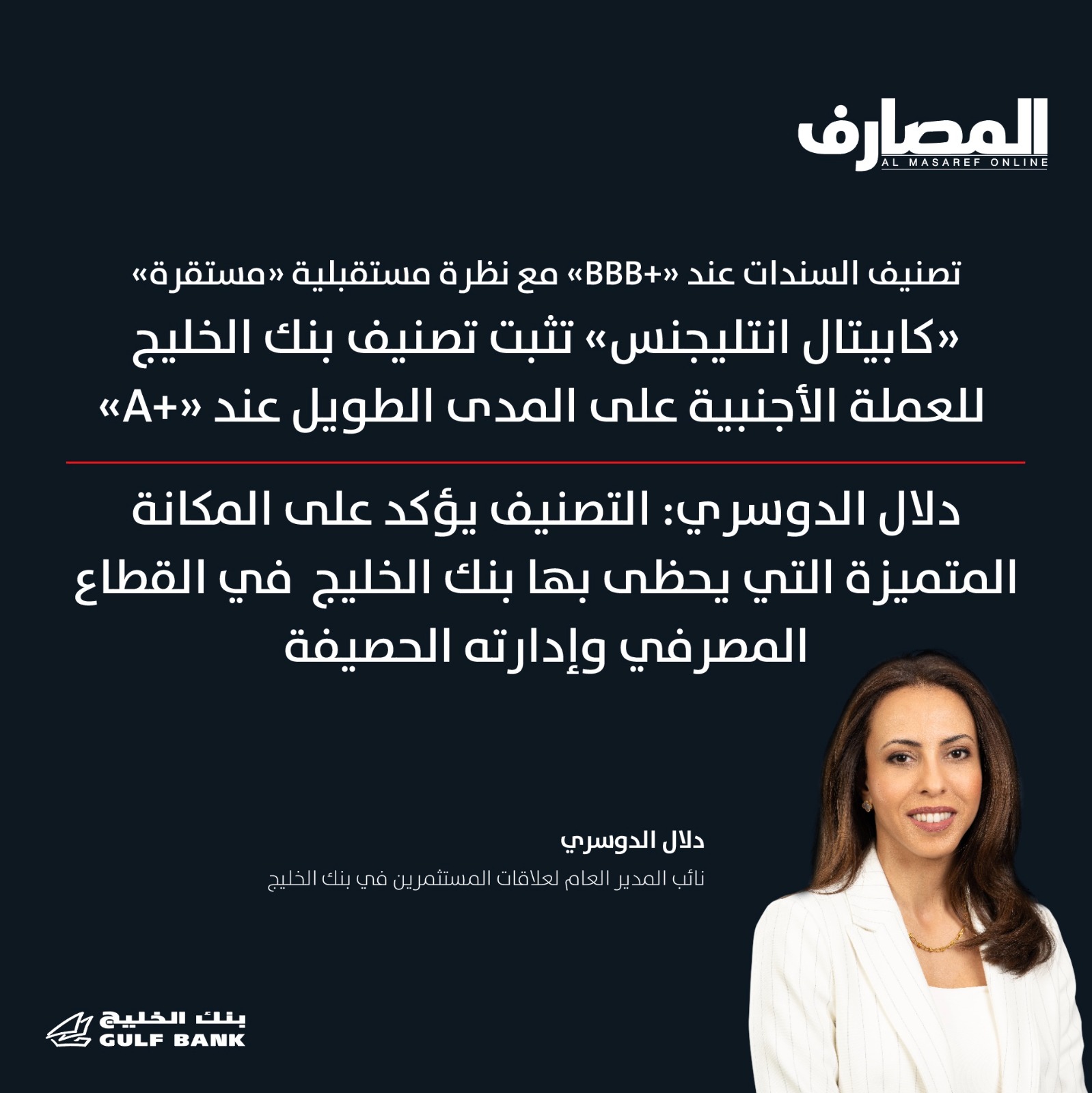 “كابيتال انتليجنس” تثبت تصنيف بنك الخليج للعملة الأجنبية على المدى الطويل عند “A+” تصنيف السندات عند “BBB+” مع نظرة مستقبلية “مستقرة”