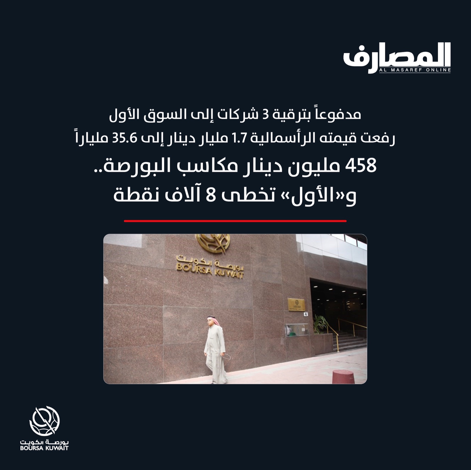 التقارير مدفوعاً بترقية 3 شركات إلى السوق الأول رفعت قيمته الرأسمالية 1.7 مليار دينار إلى 35.6 ملياراً 458 مليون دينار مكاسب البورصة.. و«الأول» تخطى 8 آلاف نقطة February 12, 2024 Posted by Imran Khan 12 Feb تحميل PDF قراءة