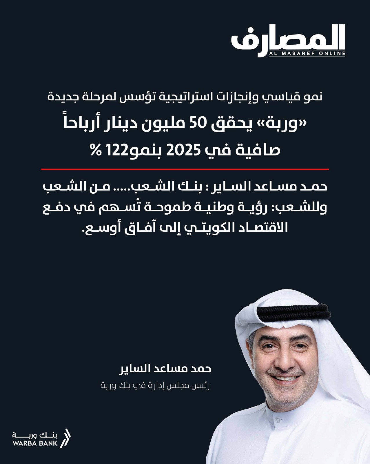 الأخبار “وربة” يحقق 50 مليون دينار أرباحاً صافية في 2025 بنمو122% February 17, 2026 Posted by Abdul Wahab 17 Feb تحميل PDF قراءة