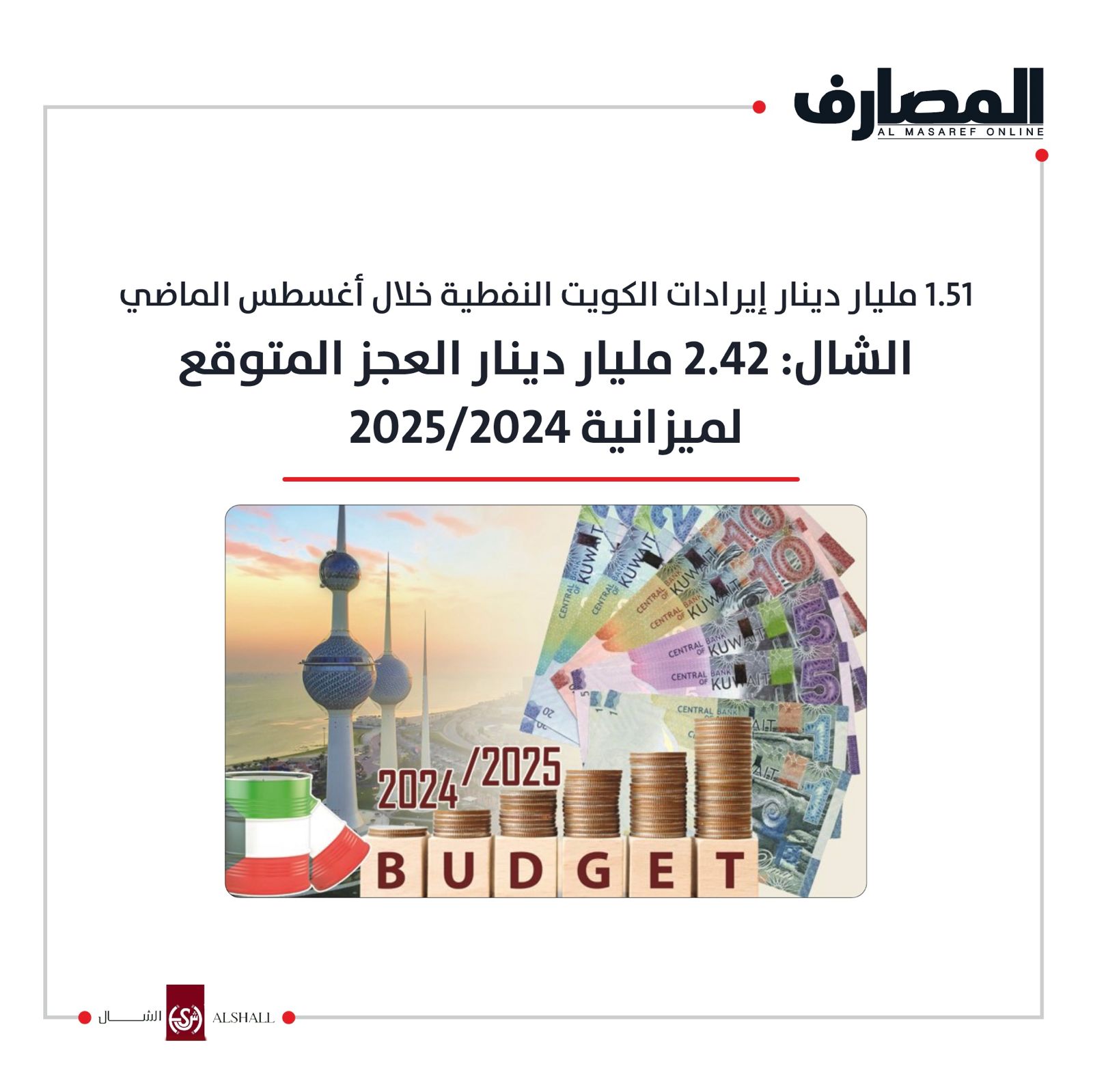 1.51 مليار دينار إيرادات الكويت النفطية خلال أغسطس الماضي«الشال»: 2.42 مليار دينار العجز المتوقع لميزانية 2024/2025