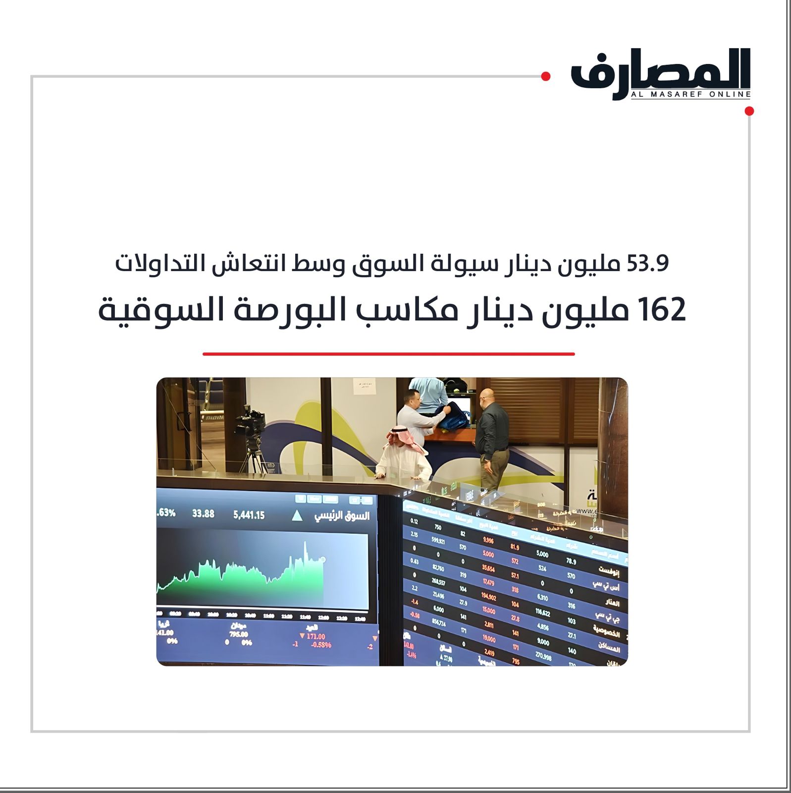 53.9 مليون دينار سيولة السوق وسط انتعاش التداولات162 مليون دينار مكاسب البورصة السوقية