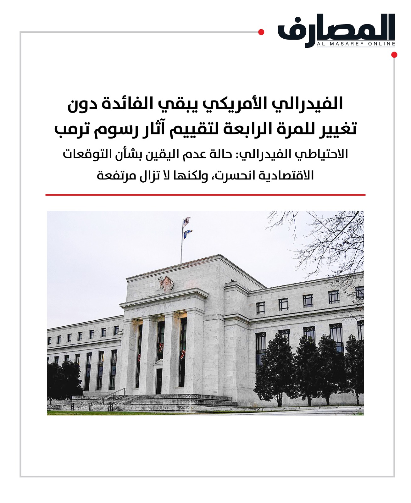 18 Jun July 13, 2025 الفيدرالي الأميركي يبقي الفائدة دون تغيير للمرة الرابعة لتقييم آثار رسوم ترمب Continue reading قراءة